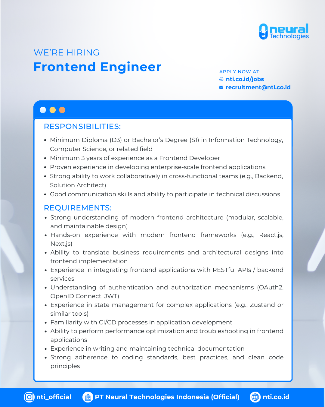 Craft Engaging Interfaces as a Frontend Engineer at PT Neural Technologies Indonesia!